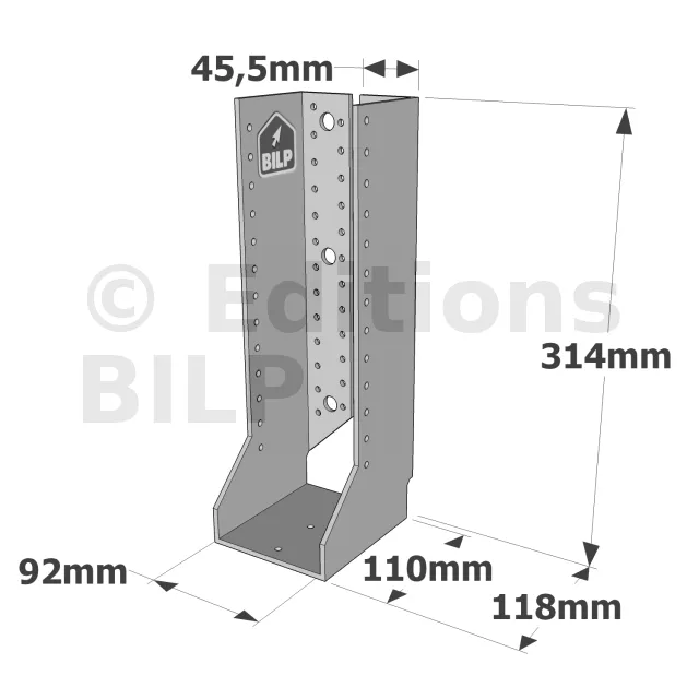 Grands sabots à ailes intérieures, gamme GSI CLASSIQUE (épaisseurs 4mm, profondeur 110mm) - Réf. GSI720/92/4