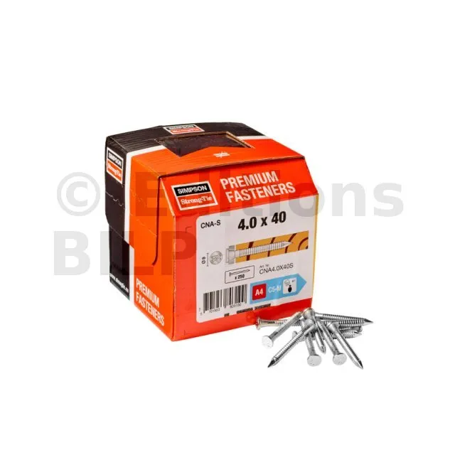 Les pointes annelées inox CNA-S sont préconisées pour les assemblages structurels des connecteurs inox Simpson Strong-Tie. Tous nos essais ont été réalisés avec ce type de pointes. Pour plus de traçabilité sur les chantiers, elles sont estampillées ≠, une garantie de qualité sans équivalent.