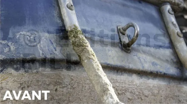 - Désagrège les salissures dues aux micro-organismes et aux résidus de bernacles / coquillages présents sur leurs zones d’adhérence favorites.