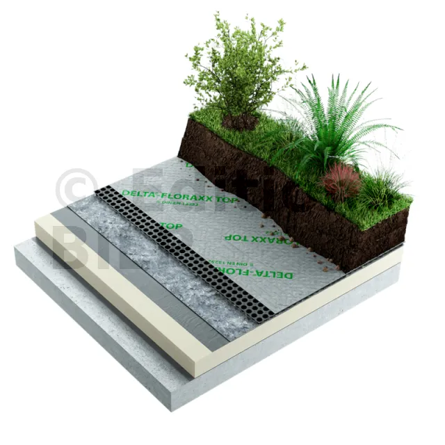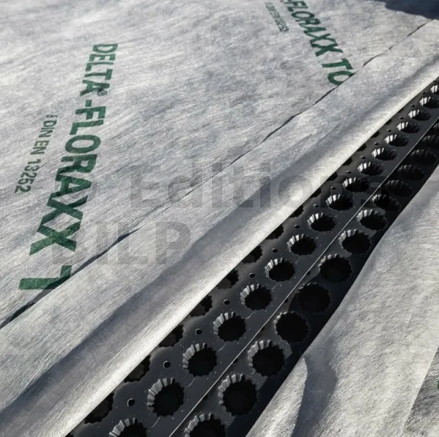 • Le DELTA®-FLORAXX TOP est une solution de drainage pour toitures végétalisées intensives, semi-intensives et extensives. Équipé d’alvéoles de 20 mm et d’un géotextile intégré, il assure une évacuation efficace de l’eau sur tous les types de toitures plates, isolées, non isolées ou inversées.