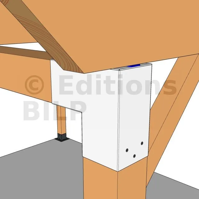 Il est utilisé dans un angle extérieur. Ce connecteur va permettre de raccorder une grosse poutre 120x120mm perpendiculairement à une autre poutre ou à un poteau vertical 120x120mm.