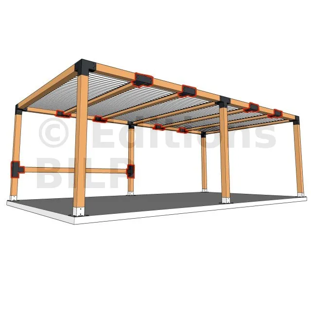 Il permet également la connexion d’une longue poutre de 120x120mm à un poteau intermédiaire de 120x120mm.