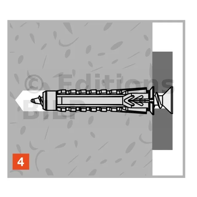- Forme conique et ailes sous tête, permettant un excellent maintien de la cheville même si le perçage est irrégulier,