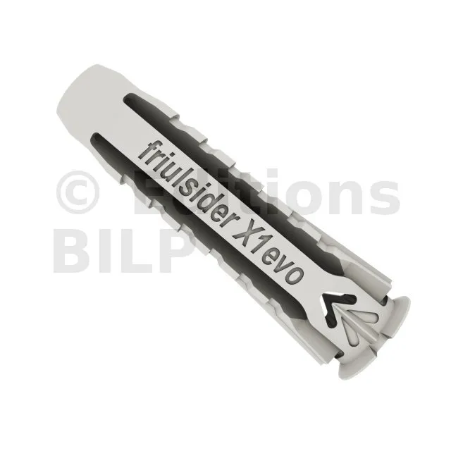 La cheville nylon universelle X1 evo, permet une fixation optimale d’éléments sur tous types de supports plein ou creux, notamment sur plaque de plâtre. Avec tous types de vis : vis filetage bois, vis filetage pas métrique. Avec un maintien large et stable grâce au 4 segments formant une rosace en arrière face du support lors de la pose.