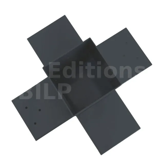 Il permet de raccorder deux poutres 120x120mm perpendiculairement à une autre poutre 120x120mm, le tout étant supporté par un poteau vertical de 120x120mm.