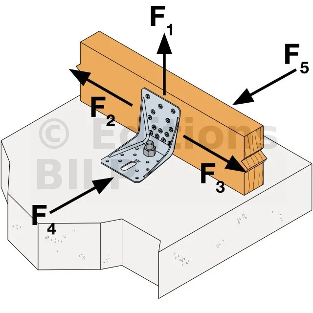 ** Se référer à la gamme d’ancrages Simpson Strong Tie type WA, BOAXII, AT-HP ou SET-XP en fonction du type de béton, des entraxes et distances aux bords.