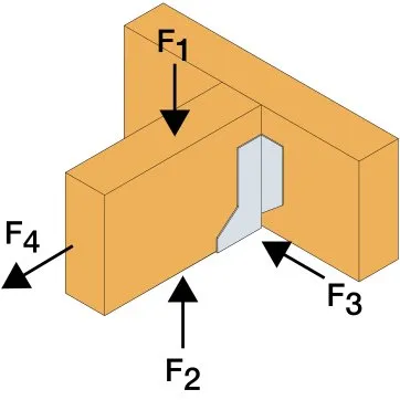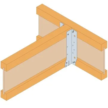 - Cette languette peut être pliée vers le haut pour les cas où le bas de solive n’est pas aligné sur le support.