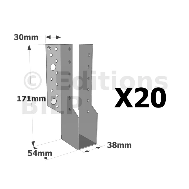 Sabots à ailes extérieures, gamme SBE ECONOMIQUE (épaisseur 1,5mm, profondeur 55mm) - Réf. SBE38/171_20