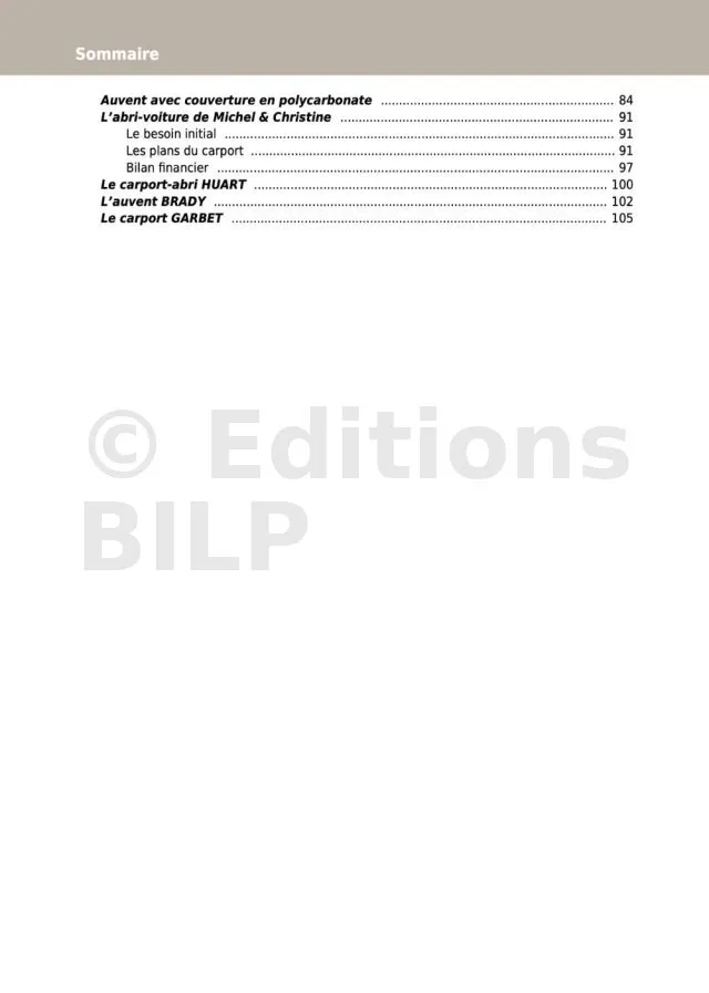 Le contenu du guide de construction des CARPORTS