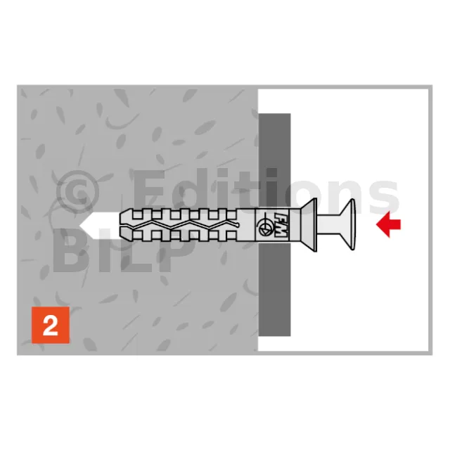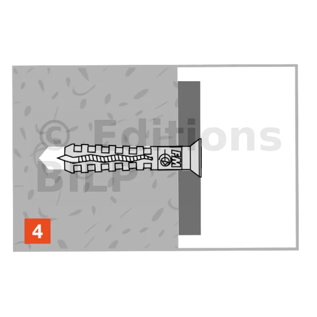 La cheville à frapper à colerette fraisée TSS convient pour la fixation rapide d’éléments légers sur supports divers.