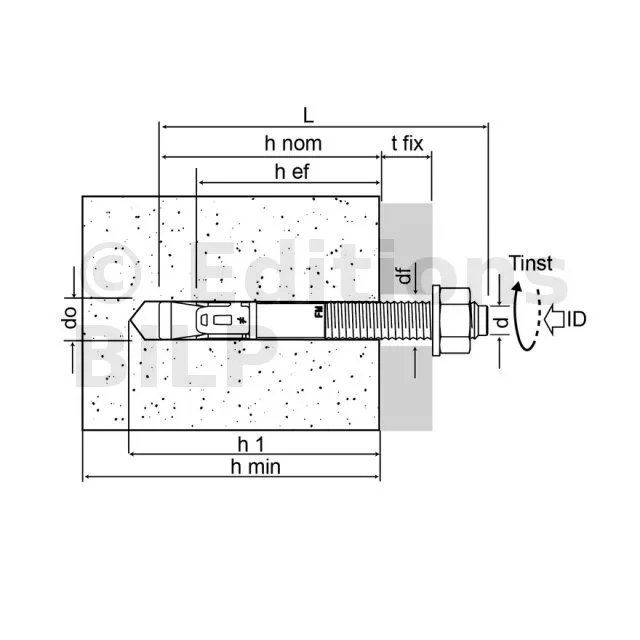 - Pose simple et rapide : écrou et rondelle prémontés et profondeur d’ancrage réduit ; Ø du filetage = Ø du perçage,