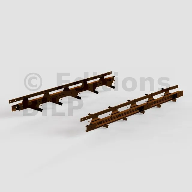 Distance entre les supports : À supposer que le mécanisme est fixé entre deux poutres, la distance entre ces deux poutres doit être égale à la longueur des lames + 35mm : 2 X 15mm (largeur du corps de mécanisme) + 5mm de jeu.