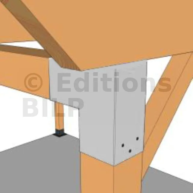 Il est utilisé dans un angle extérieur. Ce connecteur va permettre de raccorder une grosse poutre 120x120mm perpendiculairement à une autre poutre ou à un poteau vertical 120x120mm.