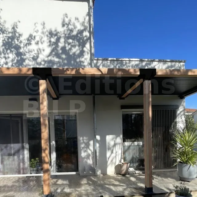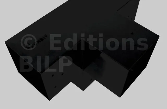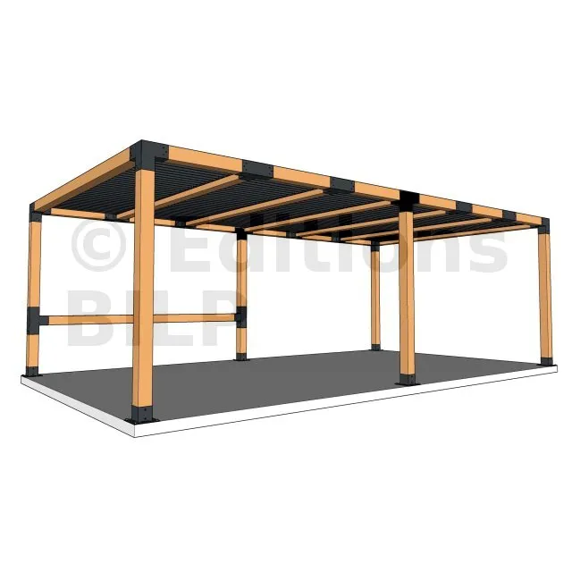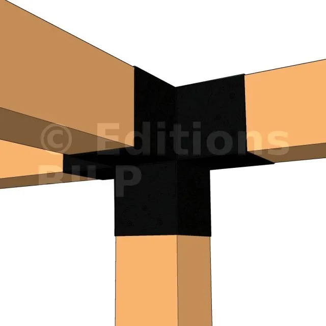 Il permet de raccorder une poutre de 120x120mm perpendiculairement à un chevron de 120x120mm, le tout étant supporté par un poteau vertical de 120x120mm.
