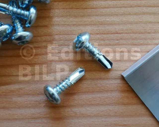 Les mécanismes du système SUNDIY sont solidement fixés à la structure (que ce soit du bois, de l’aluminium, du béton, etc.) à l’aide des clips* de fixation qui doivent être vissés au préalable. Les vis proposées ici sont spécialement conçues pour garantir une fixation efficace dans l’acier.
