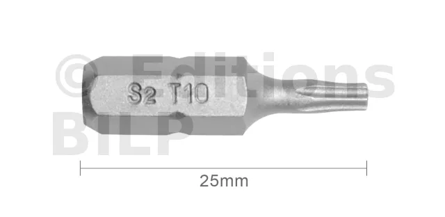 Embout T10 25mm (Qualité Professionnelle, Acier S2) - lot de 1 embout - Réf. EmboutT10_1