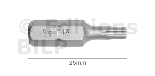Embout T15 25mm (Qualité Professionnelle, Acier S2) - lot de 1 embout - Réf. EmboutT15_1
