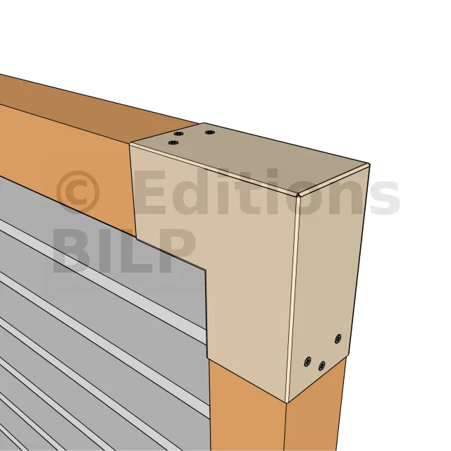 Il est utilisé dans un angle extérieur. Ce connecteur va permettre de raccorder une poutre 90x90mm perpendiculairement à une autre poutre ou à un poteau vertical 90x90mm.