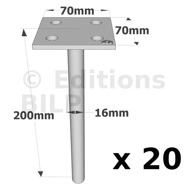 Pieds de poteau à sceller simple platine - Réf. PPSP70_20