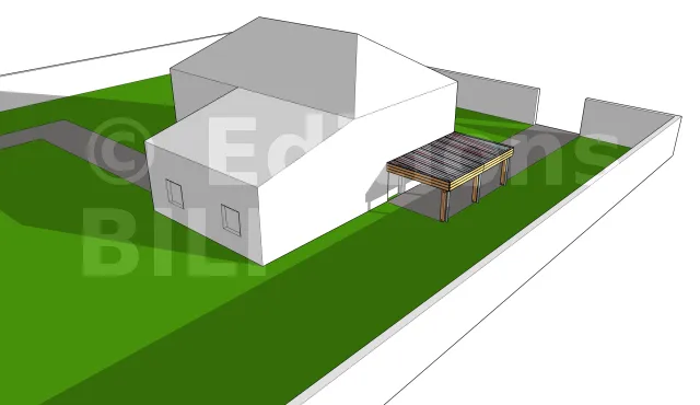 - 2 : Porte d’accès directement sous le carport. Permet d’éviter les intempéries pour les usagers jusqu’à la voiture.