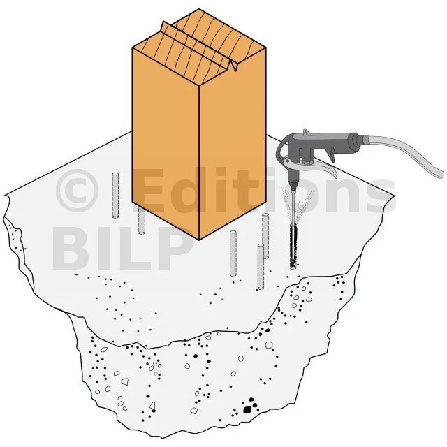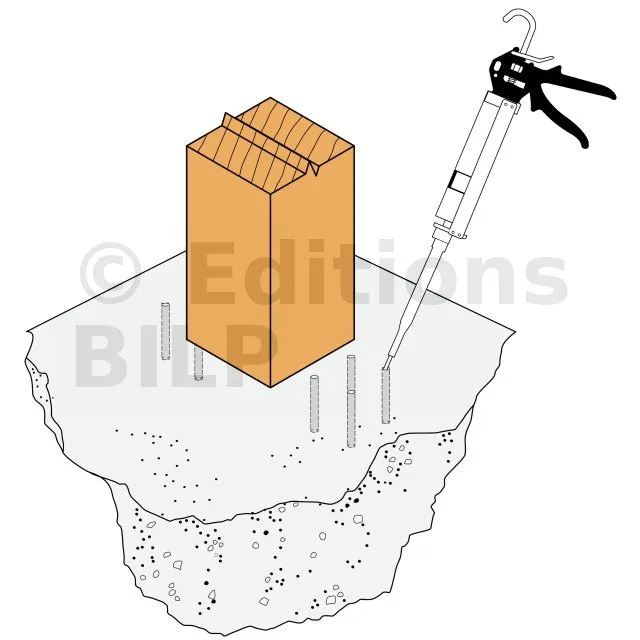- Ancrage chimique : résine AT-HP + Tige filetée LMAS M10-120/25.
