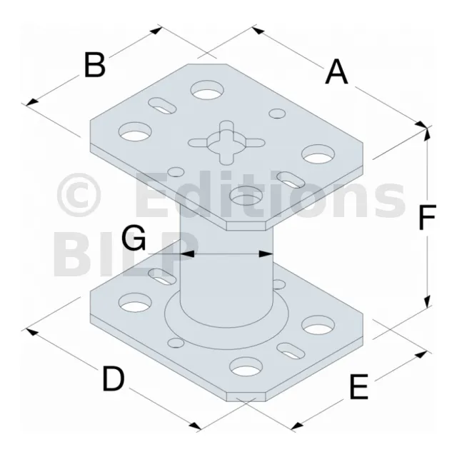 Pied de poteau mini fixe, hauteur (B) : 50mm, cdt : 1 pièce - Réf. PPMINI50