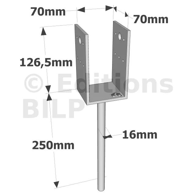 Pieds de poteau en U à sceller - Réf. PPD70/70G_10