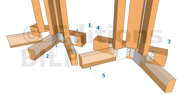 - Porté : bois massif, bois composite, lamellé-collé (poteau 200 x 200 maxi)