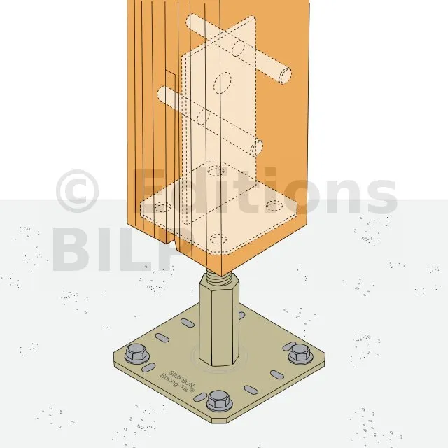 * Référez-vous à la gamme d’ancrage Simpson Strong-Tie pour sélectionner l’ancrage adapté. Les solutions standards sont à choisir en fonction du type de béton, de l’entraxe et des distances aux bords.