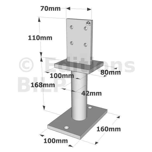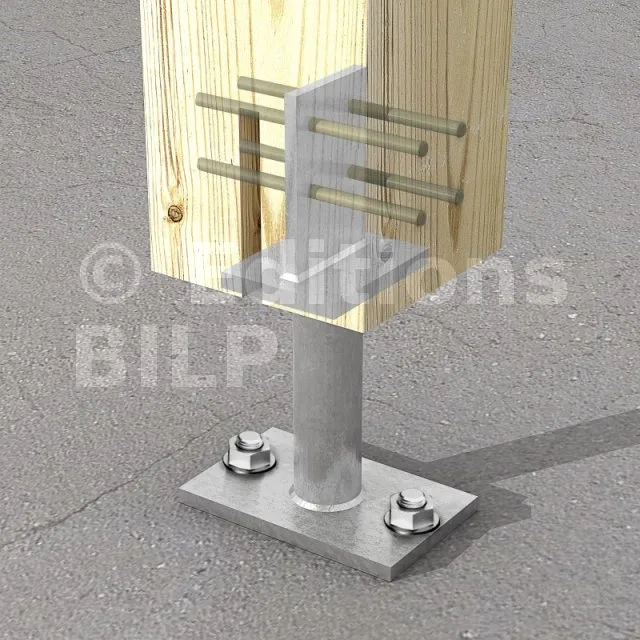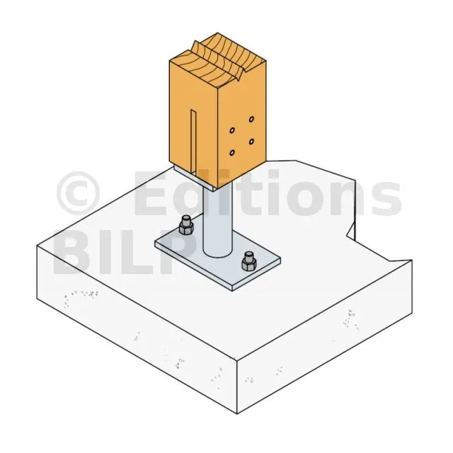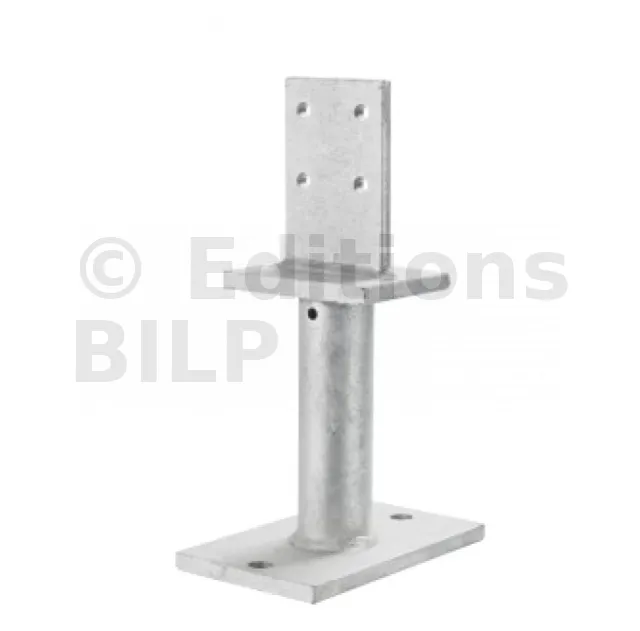 Il permet la fixation des poteaux sur un plot en béton ou une dalle.