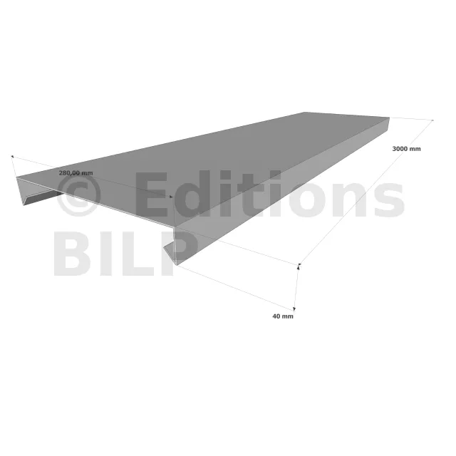 Couvertine d’acrotère plate - Gamme 280 - Aluminium 15/10 - Longueur 3000mm - Réf. CP15-280-3000