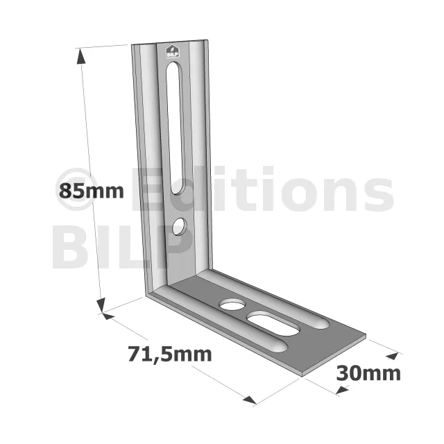 - Trous oblongs facilitant l’ajustement des assemblages,