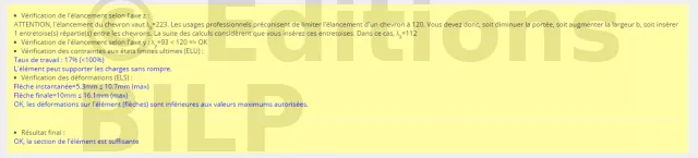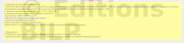 Dans un premier temps, nous allons proposer une section de bois de h100 x b40, l’outil donne un résultat insuffisant.