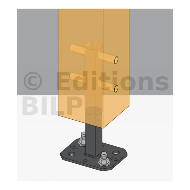 5. Fixer le pied de poteau sur le support en insérant 2 goujons Ø10 mm, en diagonale, sur la platine,