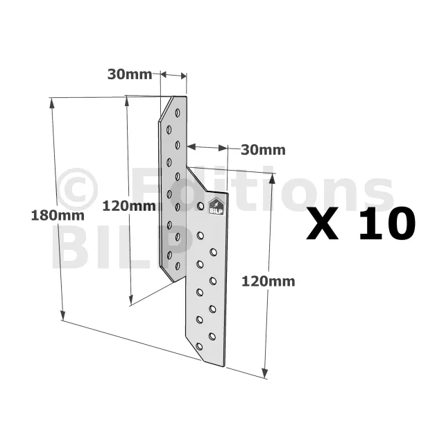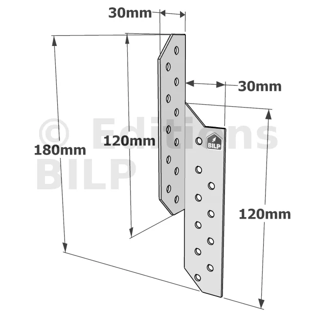 Patte de solivage DROITE - 30x180x1.5mm - Réf. PSD180/30/1.5_10