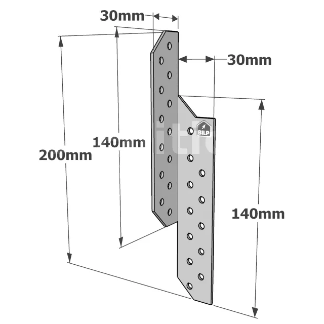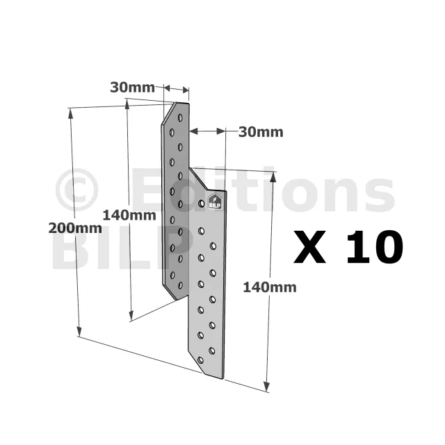 Patte de solivage DROITE - 30x200x1.5mm - Réf. PSD200/30/1.5_10
