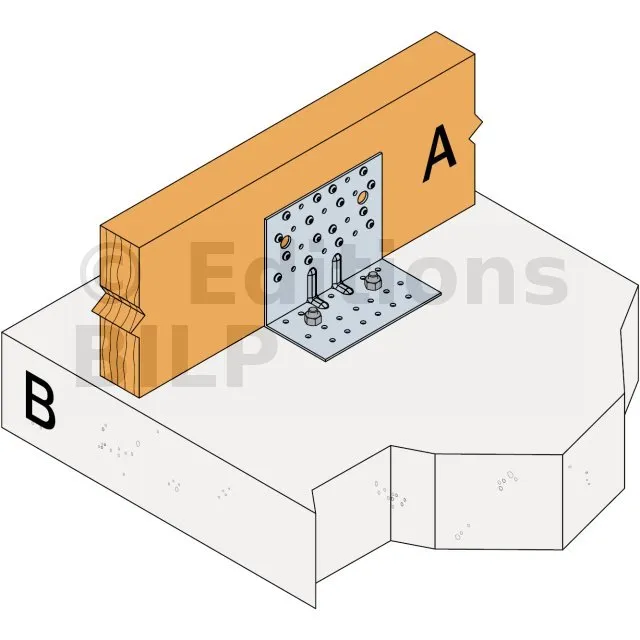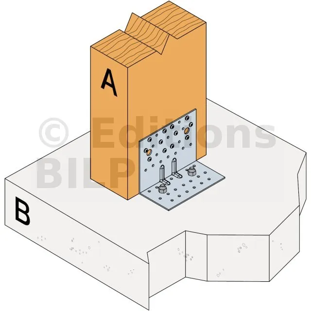 - Fixation bois/support rigide - type poteau/support rigideAile A : 12 - type : Pointes annelées CNA Ø4.0x35 ou Ø4.0x50 mm ; Aile B : 2 - type : boulon Ø12