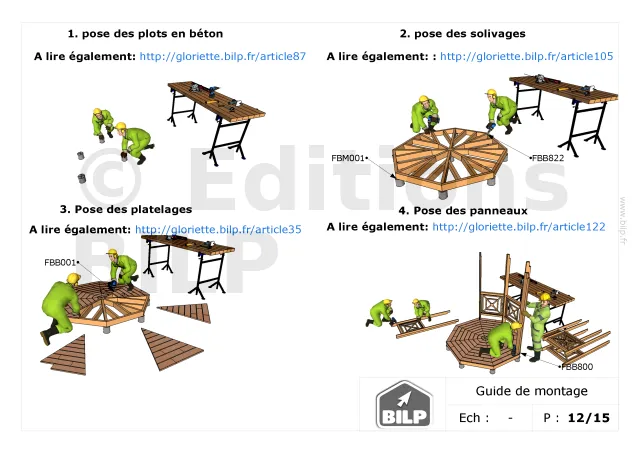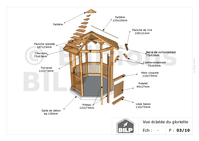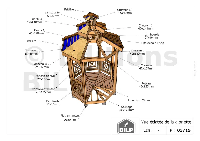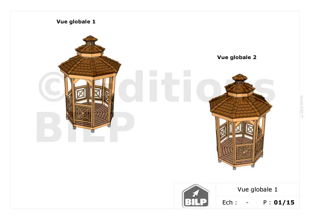 Je peux vous l’envoyer GRATUITEMENT au format PDF. Il s’agit du dossier de conception d’une belle GLORIETTE en ossature-bois. Peut-être que cela vous inspirera pour votre projet.