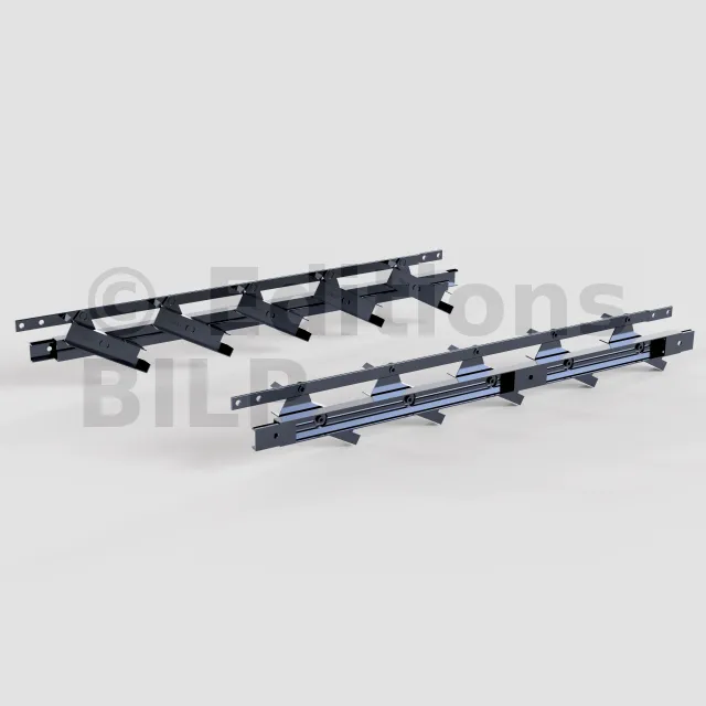 est constitué du mécanisme en ALU supportant 5 lames d’épaisseurs 20mm ALU ou 27mm BOIS. Les mécanismes peuvent être connectés bout à bout pour couvrir des hauteurs/profondeurs de 50, 100, 150cm, etc...