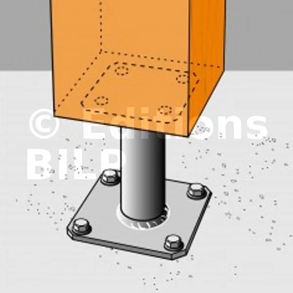 2- Fixer cette platine au poteau à l’aide de tirefonds LAG (pré-perçage nécessaire).