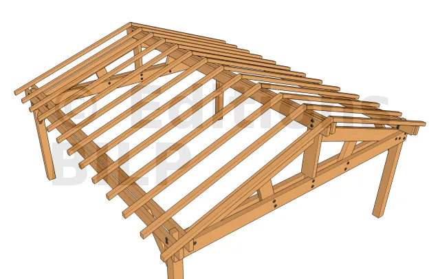 Les chevrons supportent toujours les charges, et les transmettent aux pannes en pente. Ces chevrons travaillent en flexion mais avec un risque de déviation et de flambement sous les forces suivant la pente. Il faut interposer des entretoises si la charge est trop grande et les portées importantes. Cela dépend aussi du type de couverture.