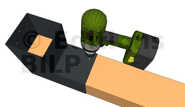 - Usiner les éléments bois en réalisant les perçages pour le boulon.