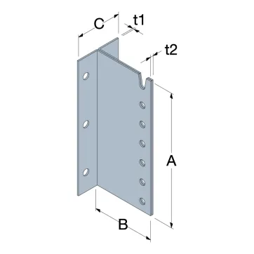 | Hauteur | A | B | C | t1 | t2 | Ø14 | Ø13 | |