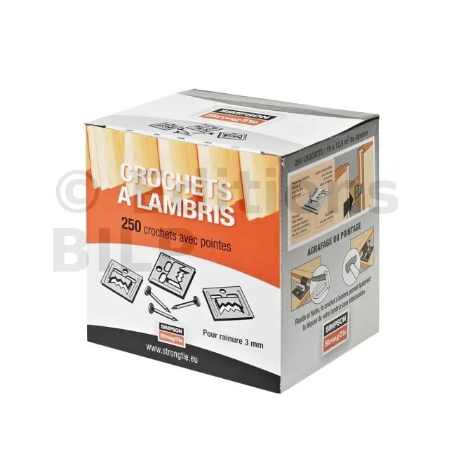 Le crochet CLIP pour lambris bois invisible entre dans la réalisation d‘ouvrages lambrissés en bois. Il est facile et rapide à poser et peut être installé par pointage ou agrafage. Ce système permet la dépose de votre lambris sans détérioration.