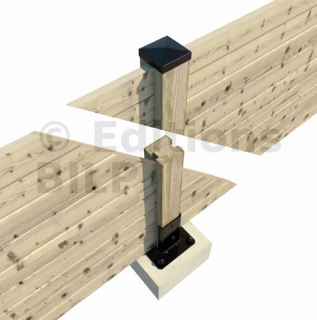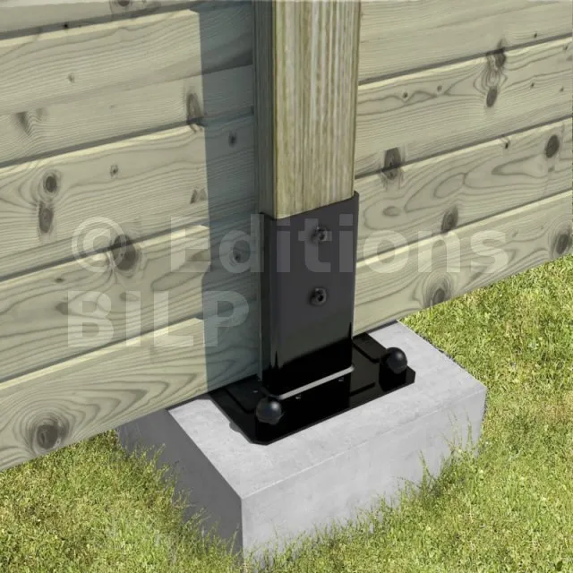 Pied de poteau carré de jardin - Finition NOIRE - Réf. KITFIX PPJNC90PB