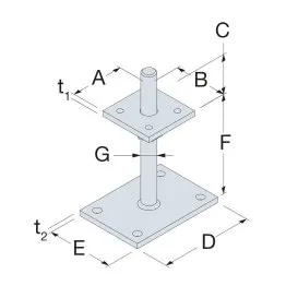 Pieds de poteau réglables en HAUTEUR - Réf. PPB80G