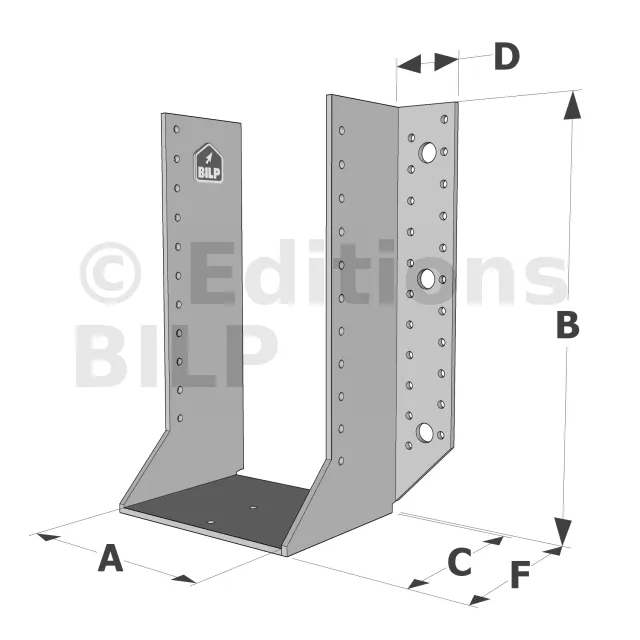 Les sabots GSE en acier galvanisé offrent une flexibilité grâce à des largeurs au choix selon les plages indiquées. Cette caractéristique permet de s’adapter parfaitement aux dimensions spécifiques des éléments de construction, garantissant une compatibilité optimale et une fixation stable.