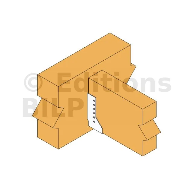 Attention, pour les sabots SAIX à ailes intérieures de largeurs inférieures à 80 mm, les ailes sont recoupées sur la hauteur dans l’axe des perçages de boulons. La fixation sur le porteur est donc uniquement possible par pointes ou vis dans la ligne verticale de perçages Ø5 proche du pli.