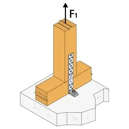 (1)La valeur caractéristique donnée est basée sur l’hypothèse d’une durée de chargement instantanée et en classe de service 2 selon l’EC5 (EN 1995) – kmod = 1.1. La résistance du goujon d’ancrage doit satisfaire : (2.23 x Fd / Nr.d)1.5 + (0.79 x Fd / Vr.d)1.5 < 1.