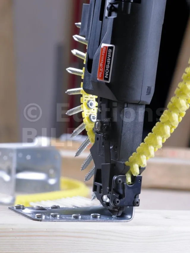 Les vis en bande CSA-T facilitent la mise en œuvre des équerres et des connecteurs sur support bois. La tête conique assure un contact complet avec le connecteur ce qui favorise la transmission des efforts.